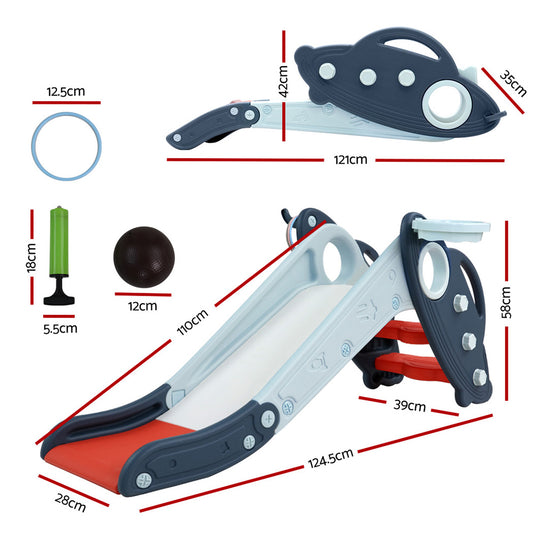 Meet the Keezi Kids Slide with Basketball Hoop! Enjoy smooth surfaces and rounded edges for safety. Wide, sturdy steps and secure grip handles ensure easy climbing. Plus, a built-in basketball...