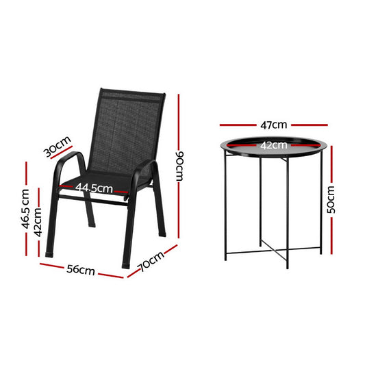 Gardeon 3-piece Outdoor Set - Black Enjoy the pleasant outdoors or have a nice chat with friends over a cuppa with the Gardeon 3-pc Outdoor Set. From the sturdy powder-coated...