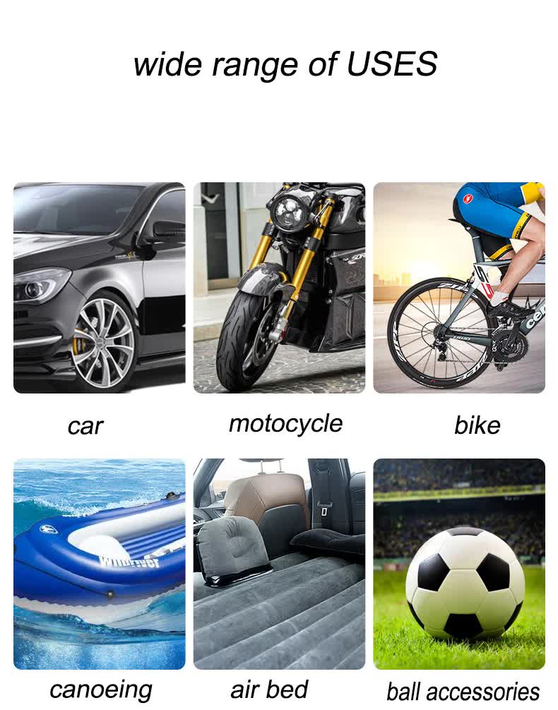 Keep your tires in optimal condition and ensure a smooth journey with this powerful 12V tire inflator. Designed for cars, motorcycles, bicycles, and various inflatables, it is compact, lightweight, and easy to use. Ideal for emergency situations, long road trips, and outdoor activities.