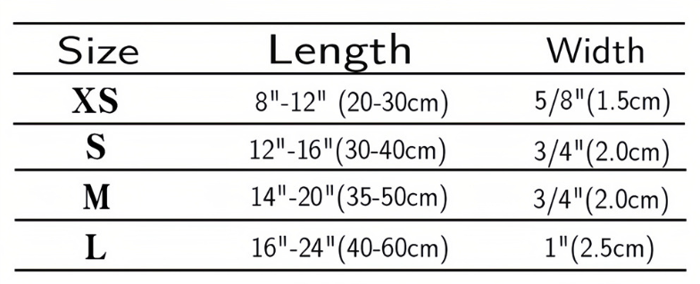 • Collar Sizes: Available in various adjustable sizes to fit small, medium, and large breeds. Please check the detailed sizing chart on the product page to ensure a perfect fit for your pet.