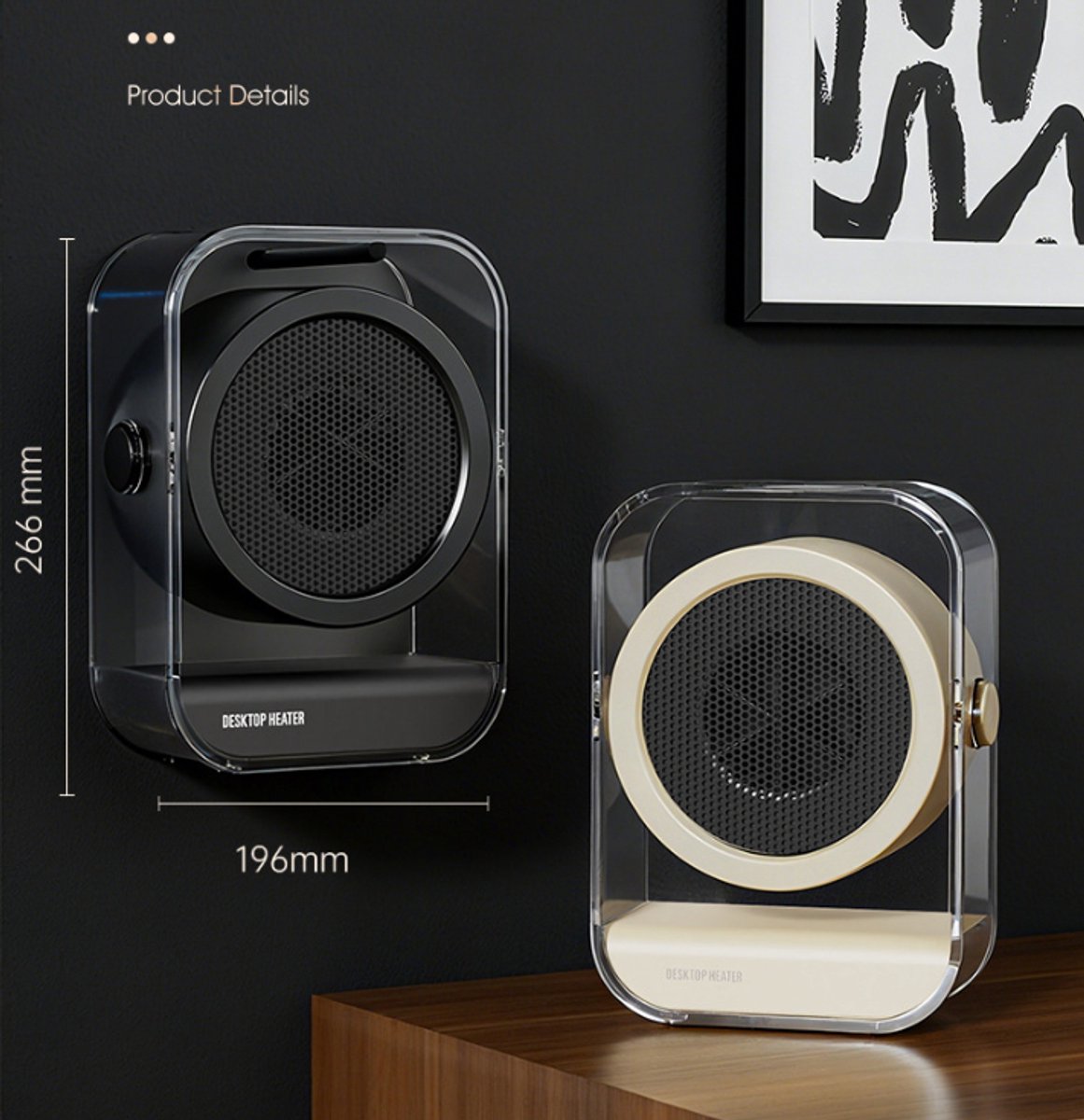 Mini Desk Heater: Compact Size, Spring-Like Warmth – Your Cozy Desk Companion Tired of a cold desk this winter? This elegantly designed mini desk heater offers high-efficiency heating, making it a warm companion for your work or study. It features a stylish, transparent, dust-proof casing and a minimalist black shade, making it a high-tech decorative piece for your desk and a complete change from boring traditional heaters. Its compact size saves space and allows you to easily place it on any desk, study table, or even in a corner of your bedroom, creating your own warm oasis. The product's heating performance is equally impressive, with a built-in, highly efficient heating element that heats up instantly upon startup. A continuous stream of warm air quickly dispels the chill, so you no longer suffer from cold hands and feet while typing or doing homework. The temperature control is simple and intuitive, allowing you to adjust the heating intensity to your liking. Safety and convenience first: Overheating protection ensures safe use; Its lightweight design makes it easy to carry, allowing you to move it from your study to your bedroom, or wherever you feel most comfortable. Whether it's a cool autumn afternoon or a crisp winter morning, this mini desk heater brings warmth with its compact size, banishing the chill and creating a comfortable office environment. Show more
