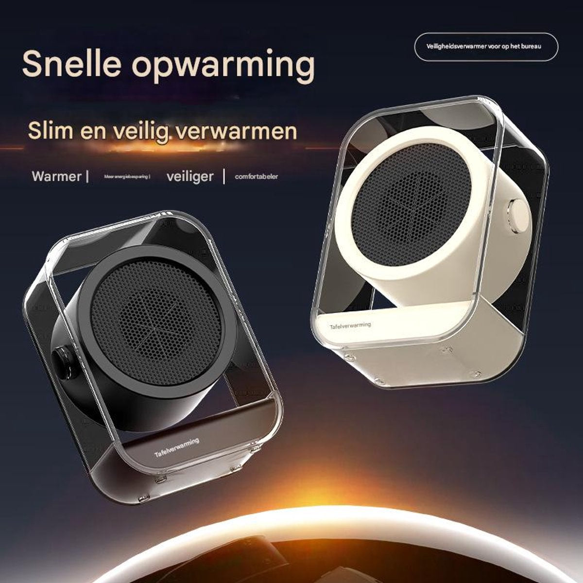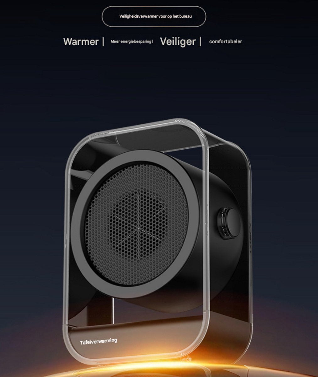 It features a stylish, transparent, dust-proof casing and a minimalist black cover, making it a high-tech decorative addition to your desk and putting an end to the dullness of traditional heaters.