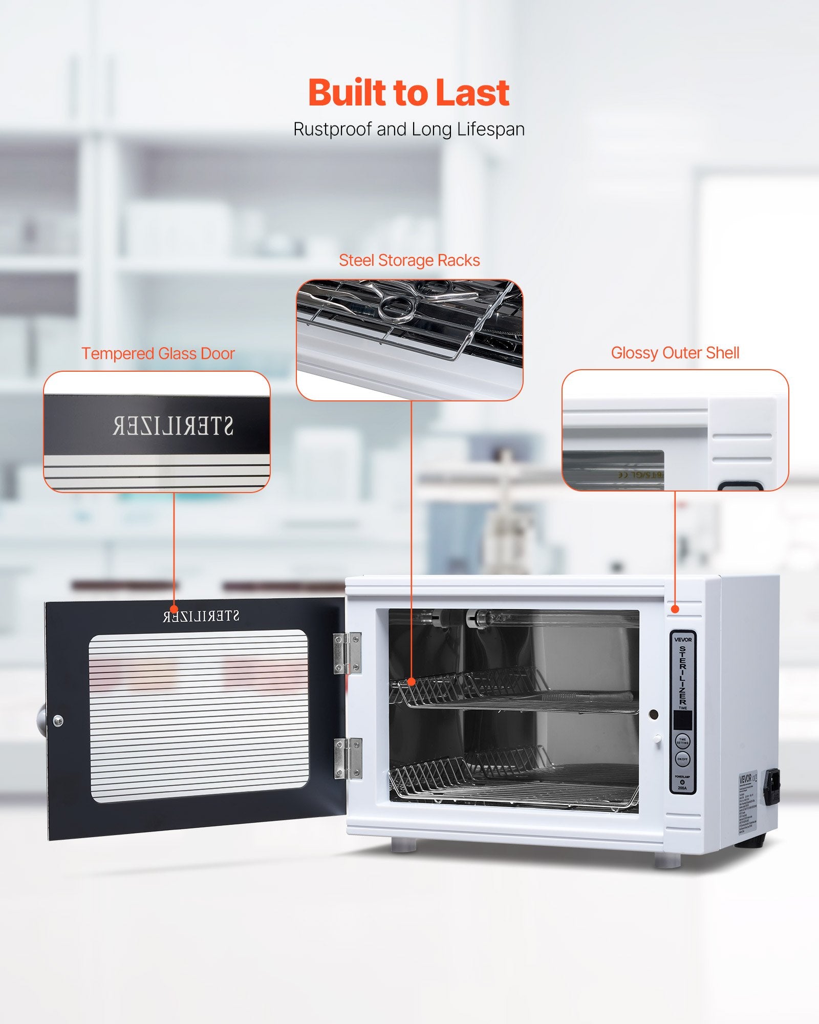 The nail tool cabinet features a visible tempered glass door and automatic closing when the door opens mechanism to avoid accidents, block UV exposure, and ensure security and reliability
