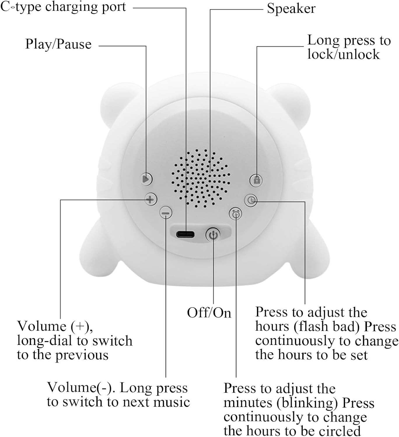 Its cute, rechargeable cartoon design adds a delightful touch to your space and eliminates the need for frequent battery replacements. Whether it's for a child's room or an adult's bedroom, this alarm clock seamlessly fits in, becoming an indispensable part of your daily routine.