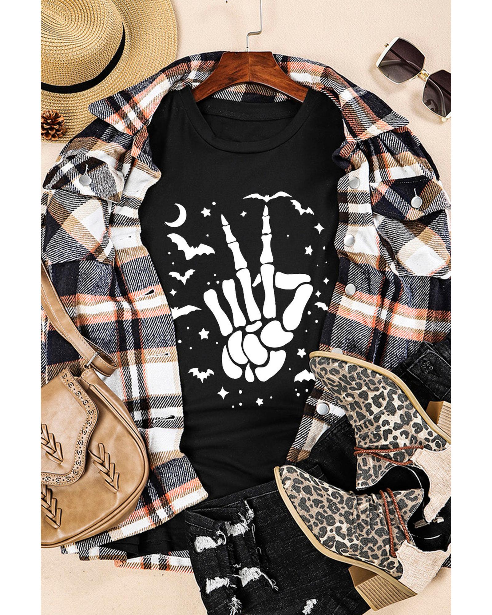 Azura Exchange Halloween Bat & Skeleton Hand Graphic Tee - M