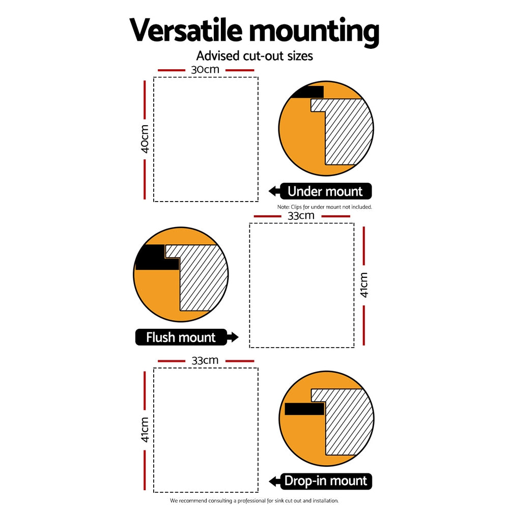 The Cefito Stainless Steel Sink is built to exacting standards so that you get the very best of quality materials and craftsmanship. It is crafted from heavy-duty food-grade 304 stainless steel comprising a minimum of 18% chromium and 9% nickel. The surface is nano-coated to be anti-scratch, anti-oil and more importantly, bacteria-free. The 3mm thick sink also features an X-flume design for easy drainage, eco-friendly anti-condensation paint, sound-deadening pads and R10 rounded corners for safety and easy cleaning. Suitable for drop-in, flush-mount or under-mount installation, our stainless steel sink should have a definitive place in your uncompromising kitchen.