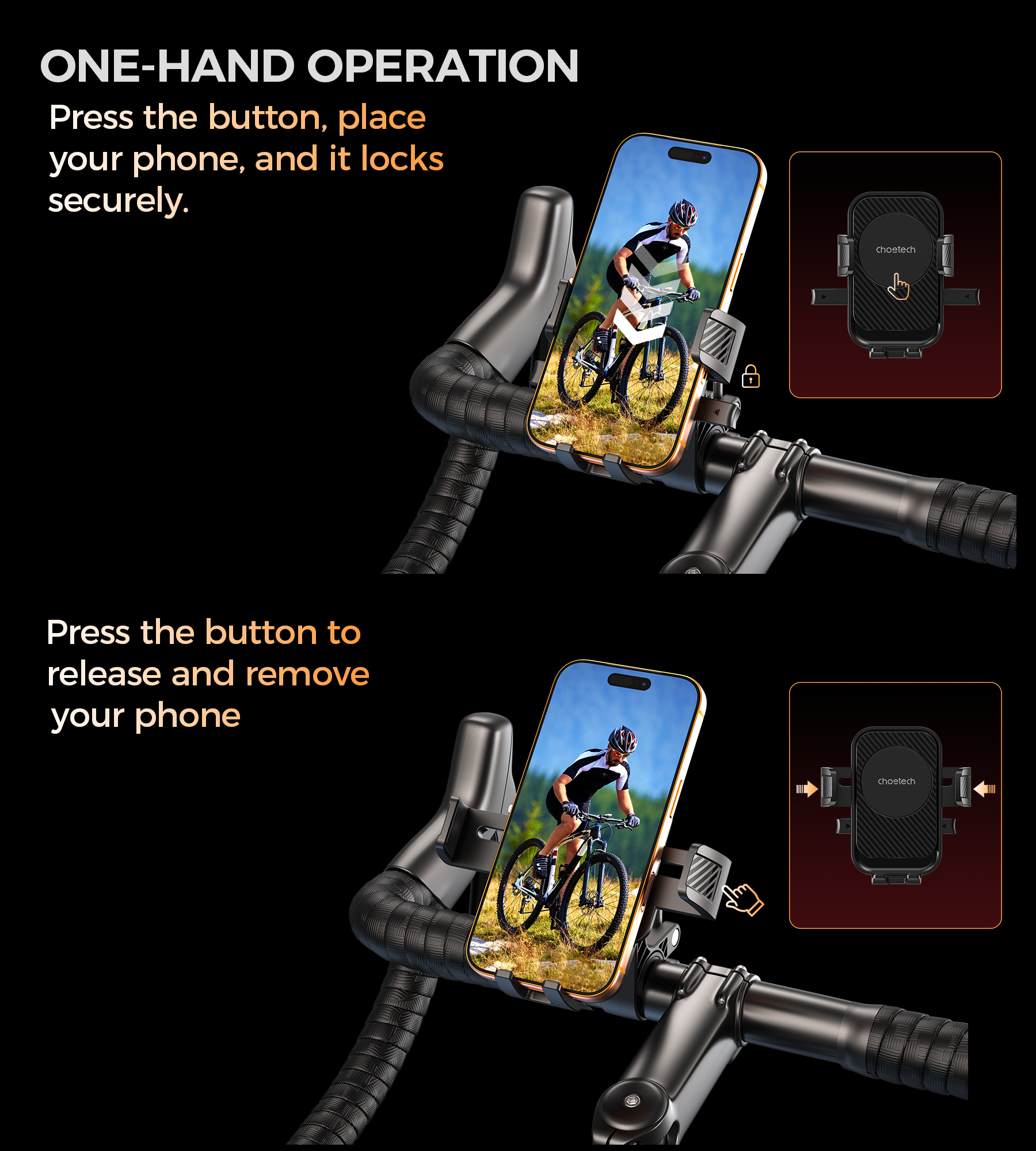 Choetech H094 Cycling Phone Holder Keep your smartphone secure and visible while riding with stable handlebar mounting and 360-degree rotation for optimal viewing angles