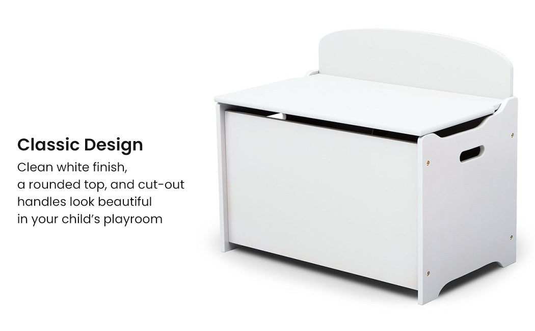 The MySize Deluxe Toy Box from Delta Children is a stylish storage option for the living room, playroom or your child's bedroom. Outfitted with a spacious interior, this toy organiser provides plenty of space to store toys large and small. Cutout handles on either side allow you to easily move the toy box from room to room.
