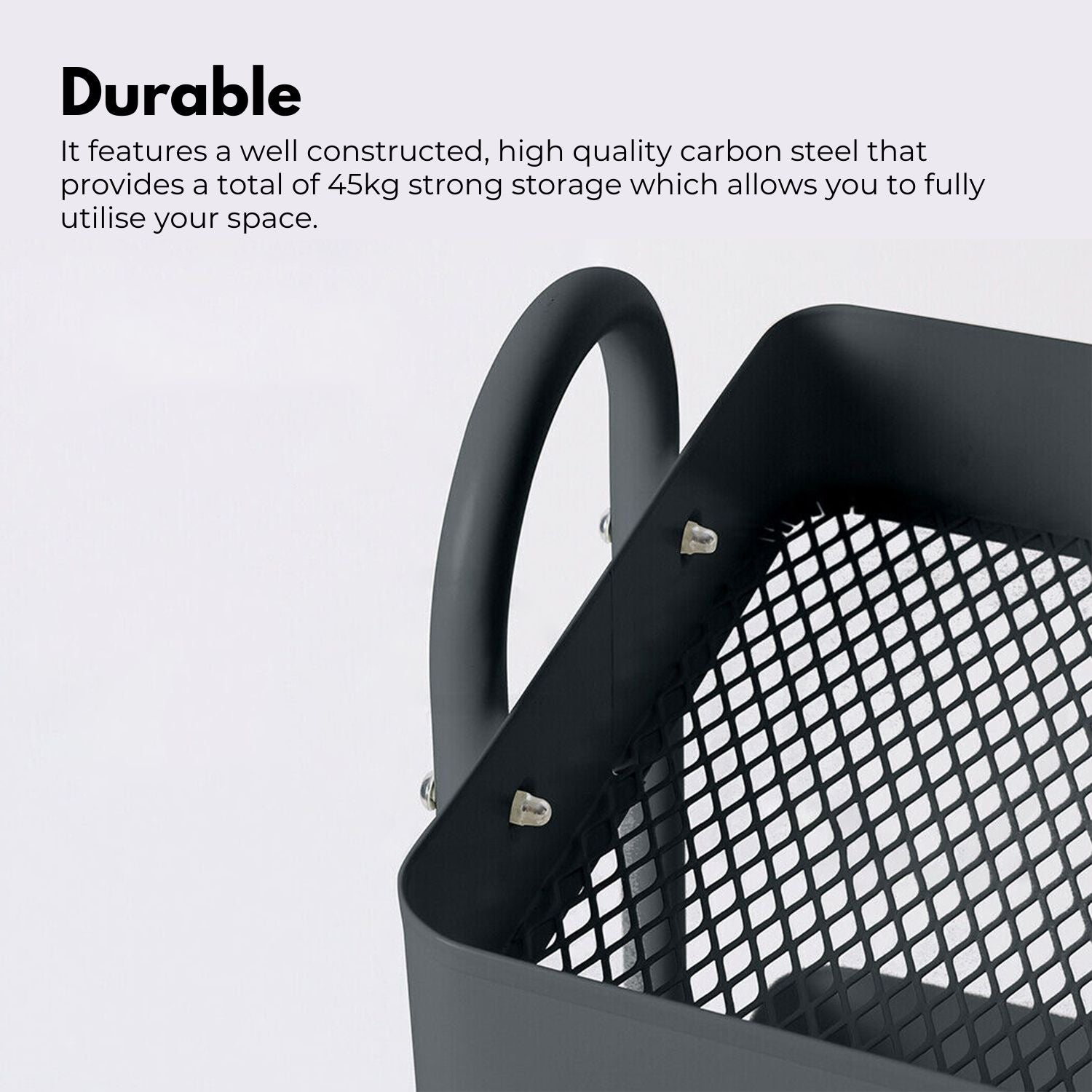 Durable It features a well constructed, high quality carbon steel that provides a total of 45kg strong storage which allows you to fully utilize your space.