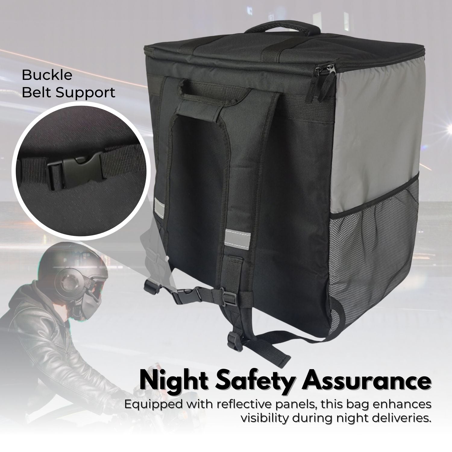 Night Safety Assurance: Equipped with reflective panels, this bag enhances visibility during night deliveries, adding an extra layer of safety for both the delivery person and recipients.