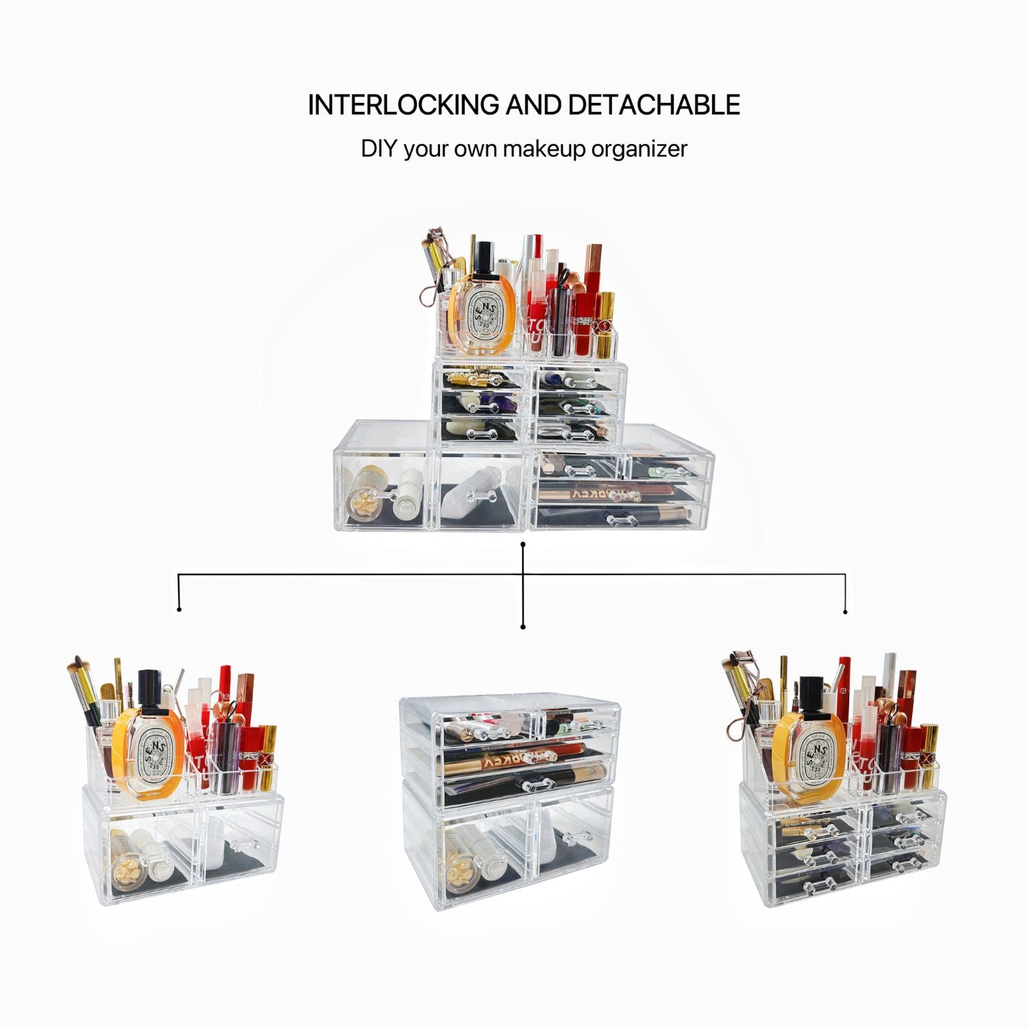 • Detachable: With anti-slip mats, the four-piece makeup organizer boxes interlock securely. More drawers can be stacked on top of the base or used separately.