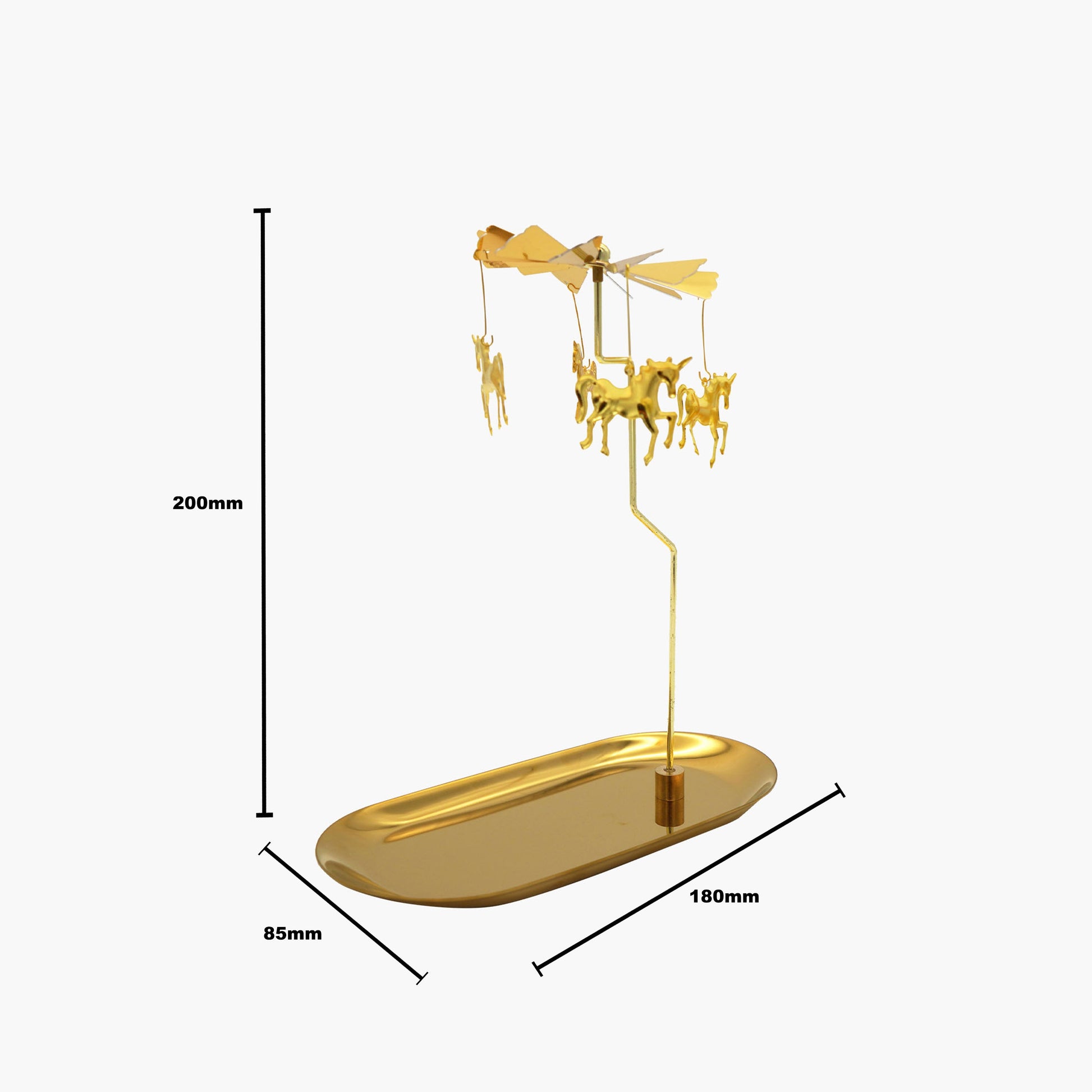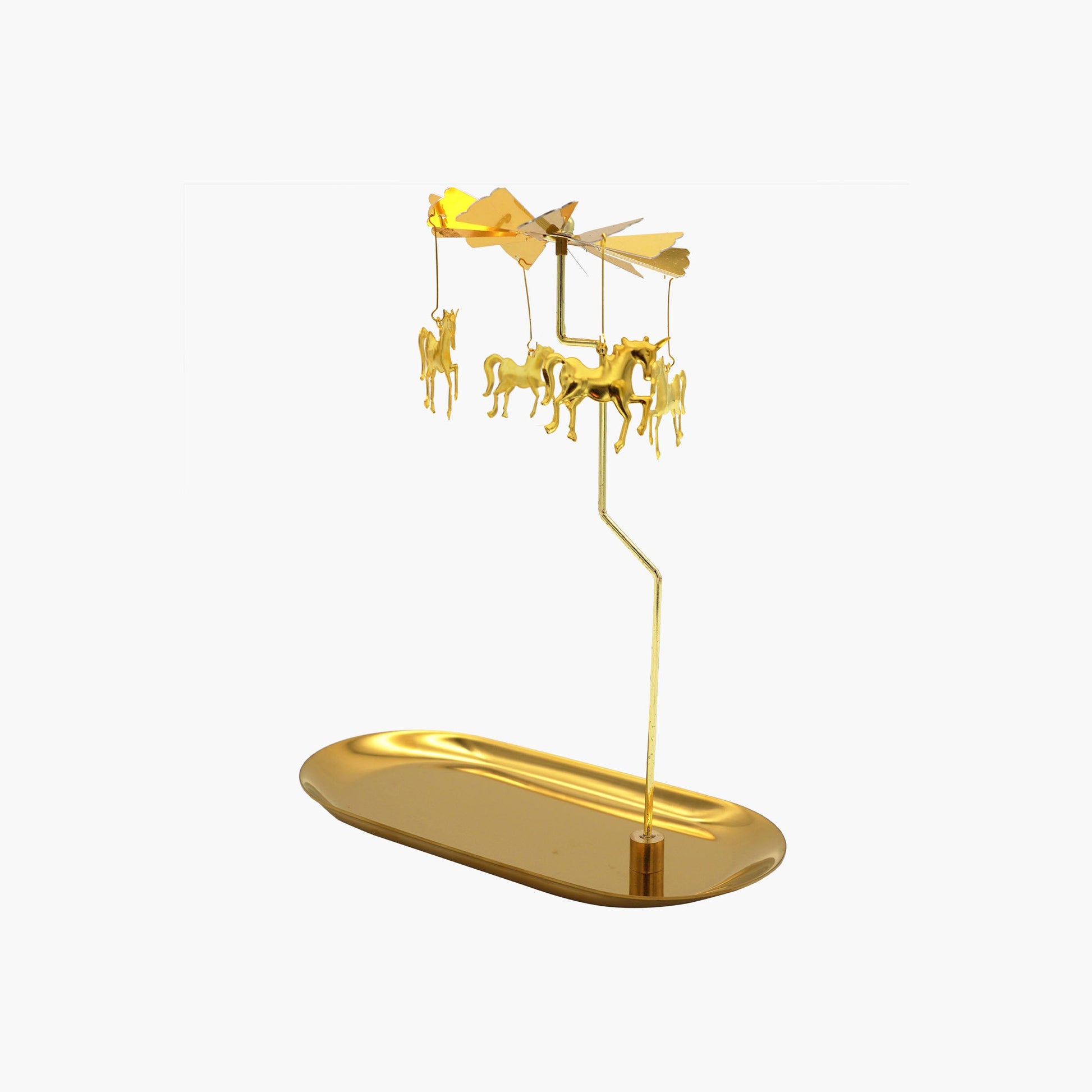 Crafted from gold color finished stainless steel, the Le Peagase Candle Tray has a rotatable design that it will automatically rotates when it gets heat from the candle and also rotates when the wind blows. This ultimate addition to shape a romantic atmosphere and character to any space in your home.